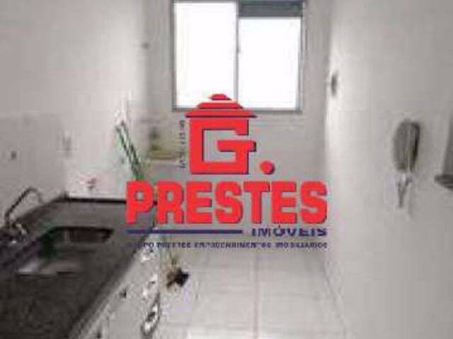 Apartamento no Campolim com dois dormitórios, um banheiro social com gabinete, armários e box, cozinha com pia em granito com gabinete, área de serviço, sala de estar, garagem descoberta para um carro.
