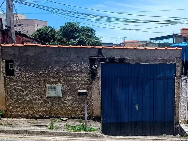Casa simples com três cômodos e banheiro e mais um alicerce para um cômodo e banheiro com estrutura para sobrado, e uma varanda no fundo.